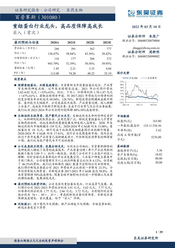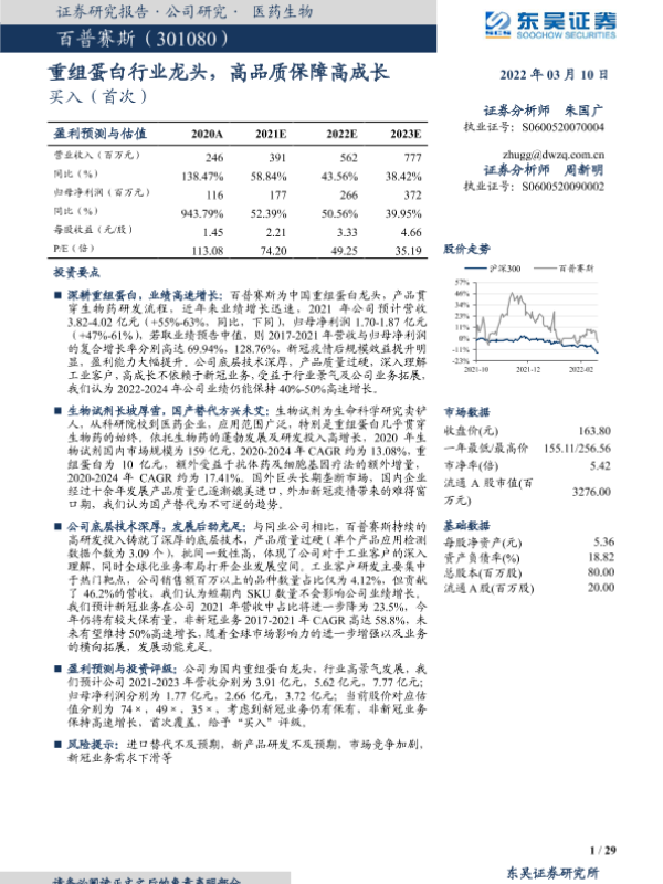 【东吴证券】【20220310】20220310-东吴证券-百普赛斯-301080.SZ-重组蛋白行业龙头,高品质保障高成长-29页
