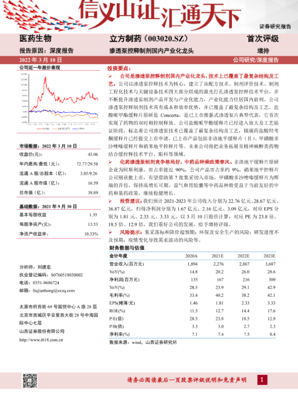 【山西证券】【20220310】立方制药(003020.SZ)首次评级:渗透泵控释制剂国内产业化龙头-22页