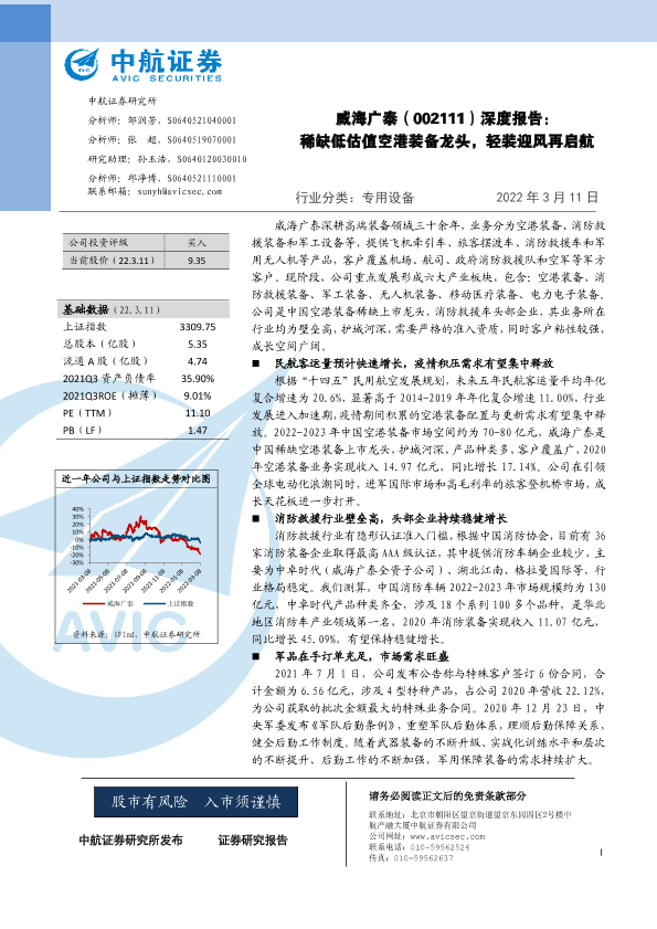 【中航证券】【20220311】威海广泰-002111.SZ-深度报告:稀缺低估值空港装备龙头,轻装迎风再启航-33页