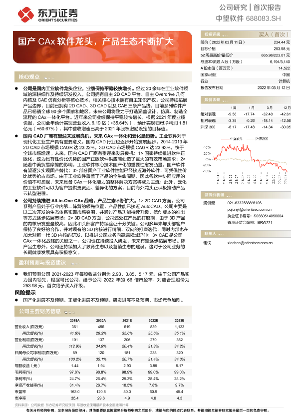【东方证券】【20220312】20220312-东方证券-中望软件-688083.SH-国产CAx软件龙头,产品生态不断扩大-39页