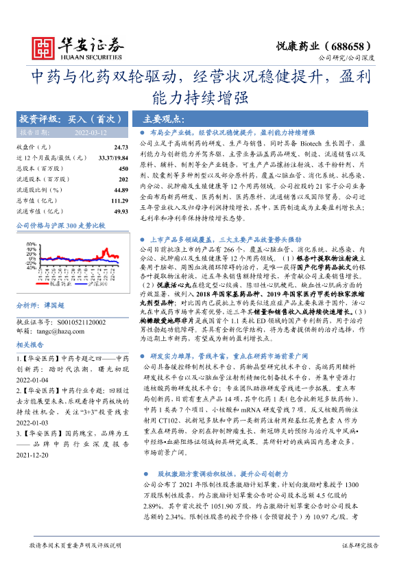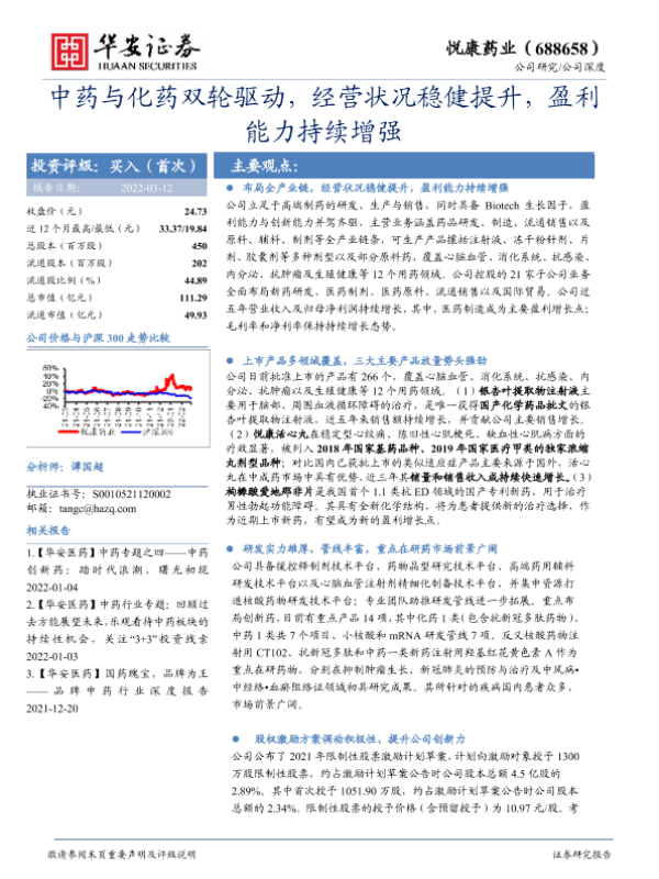 【华安证券】【20220312】中药与化药双轮驱动,经营状况稳健提升,盈利能力持续增强-32页
