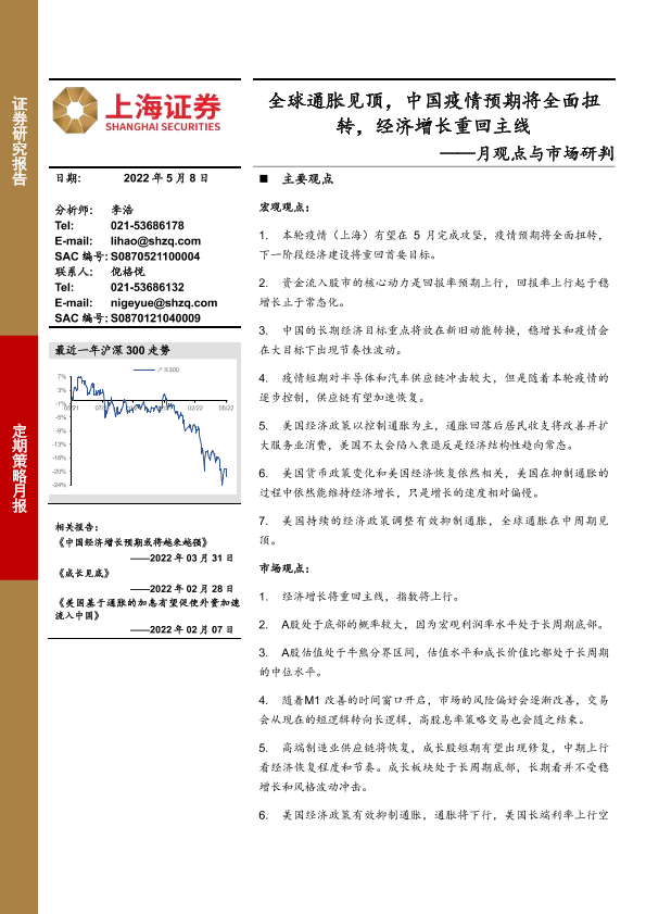 【上海证券】【20220508】月观点与市场研判:全球通胀见顶,中国疫情预期将全面扭转,经济增长重回主线-23页