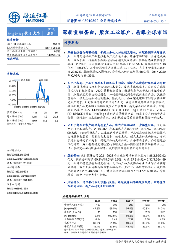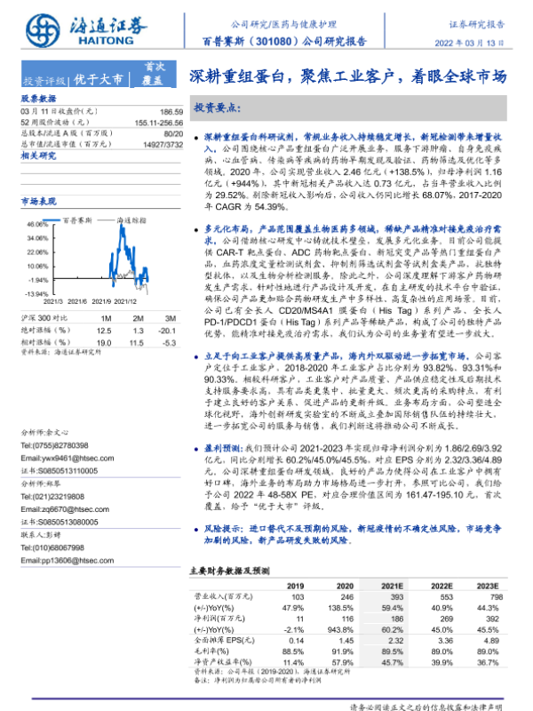 【海通证券】【20220313】20220313-海通证券-百普赛斯-301080.SZ-公司研究报告:深耕重组蛋白,聚焦工业客户,着眼全球市场-24页
