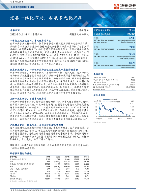 一体化布局 三元材料 成本优势 磷酸铁锂 锂电正极材料