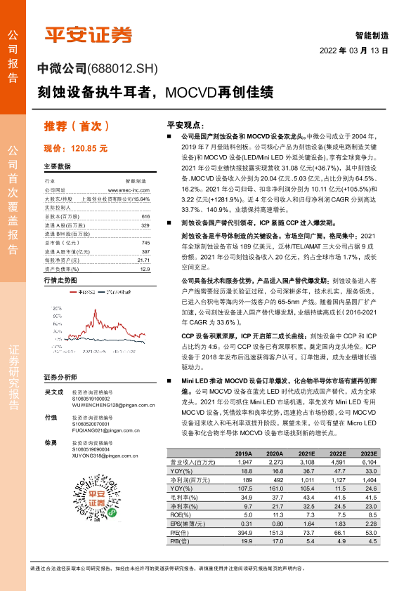 【平安证券】【20220313】中微公司-刻蚀设备执牛耳者,MOCVD再创佳绩-32页