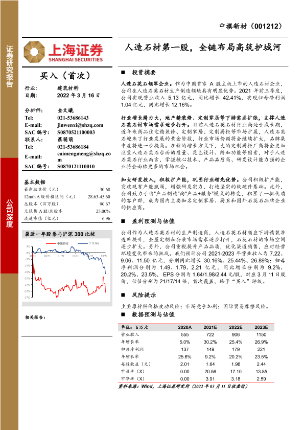 【上海证券】【20220316】中旗新材-001212.SZ-人造石材第一股,全链布局高筑护城河-24页