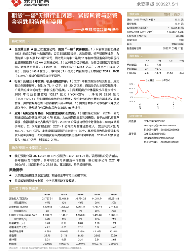 【东方证券】【20220317】永安期货首次覆盖报告:期货'一哥'无惧行业风浪,紧握风管与财管金钥匙期待创新突围-37页