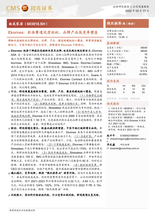 【海通证券】【20220317】Ekornes:软体赛道优质标的,品牌产品筑竞争壁垒-24页