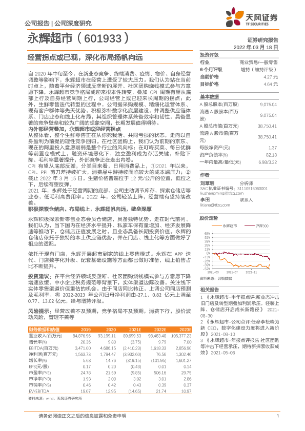 【天风证券】【20220318】永辉超市-601933.SH-经营拐点或已现,深化布局扬帆向远-18页