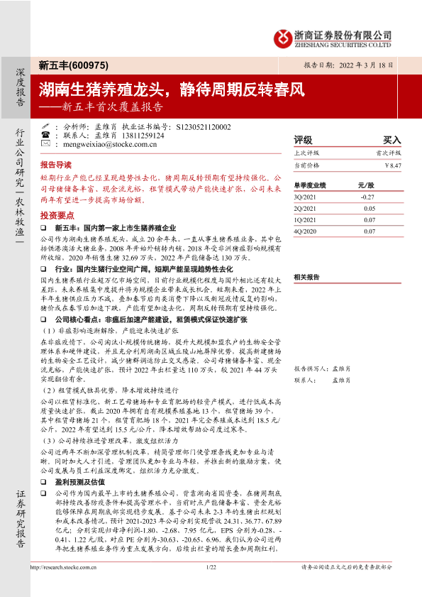 【浙商证券】【20220318】新五丰首次覆盖报告:湖南生猪养殖龙头,静待周期反转春风-22页