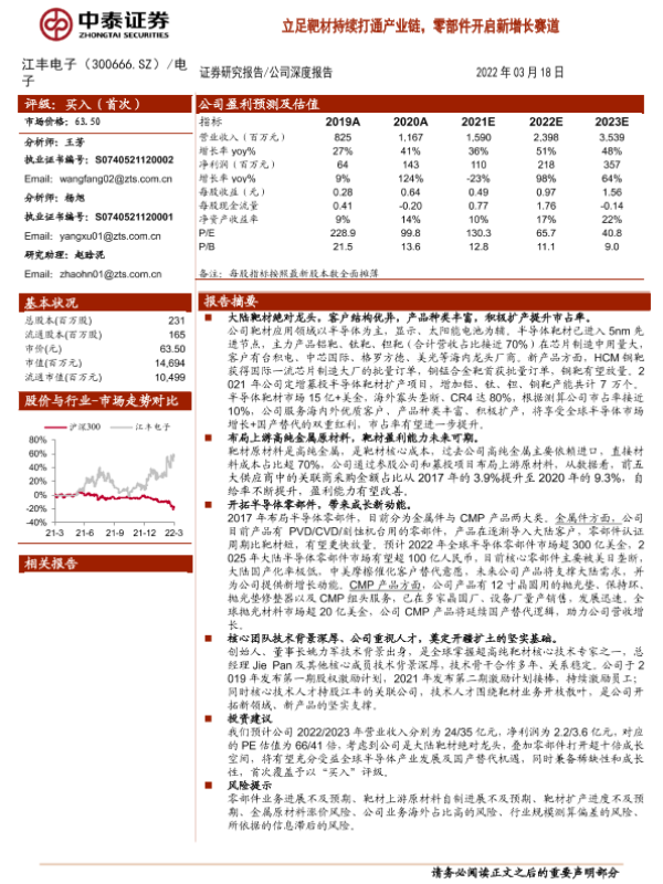 【中泰证券】【20220318】20220318-中泰证券-江丰电子-300666.SZ-立足靶材持续打通产业链,零部件开启新增长赛道-35页