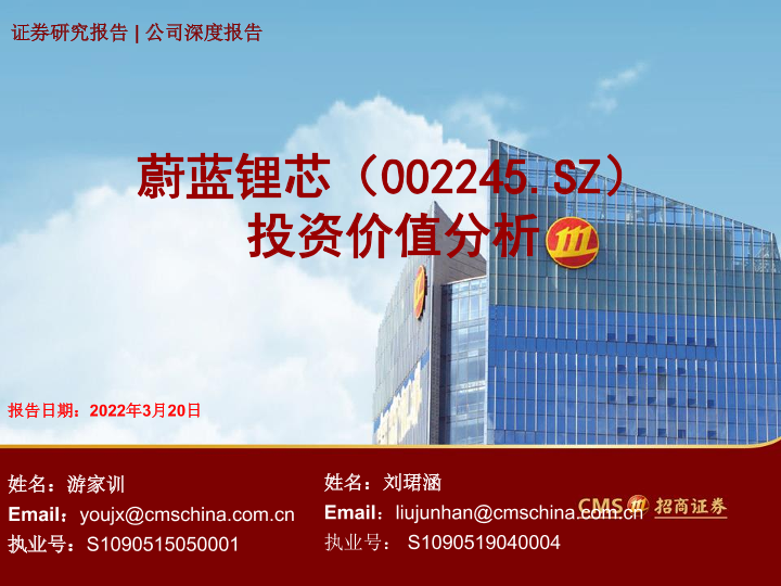 【海通证券】【20220320】蔚蓝锂芯投资价值分析-30页