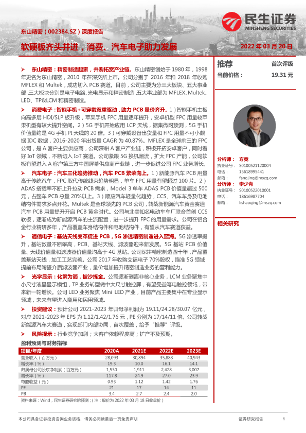 【民生证券】【20220320】20220320-民生证券-东山精密-002384.SZ-深度报告:软硬板齐头并进,消费、汽车电子助力发展-48页