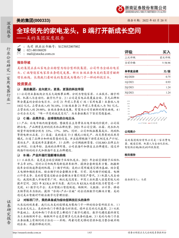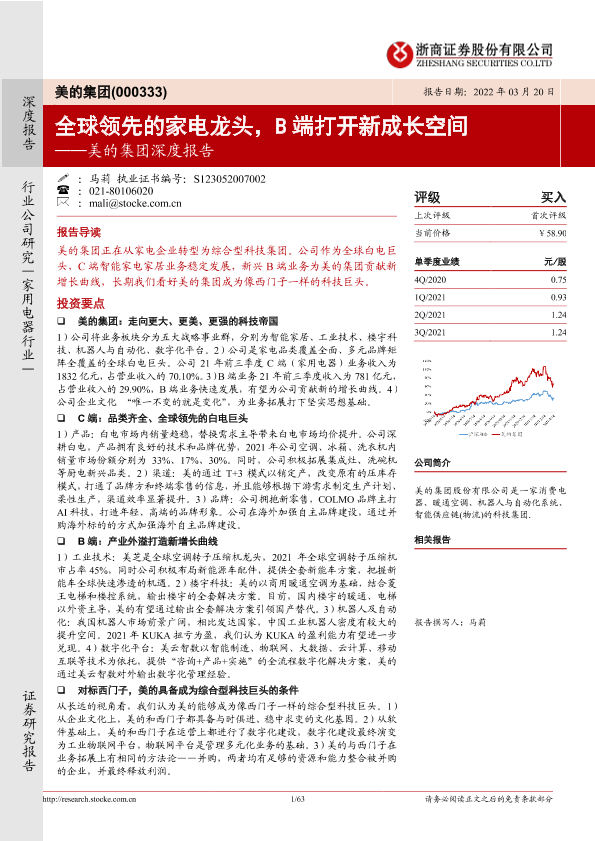 【浙商证券】【20220320】20220320-浙商证券-美的集团-000333.SZ-美的集团深度报告:全球领先的家电龙头,B端打开新成长空间-63页
