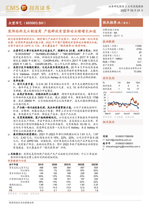 【海通证券】【20220321】众望布艺-605003.SH-装饰面料龙头制造商 产能释放有望推动业绩增长加速-15页