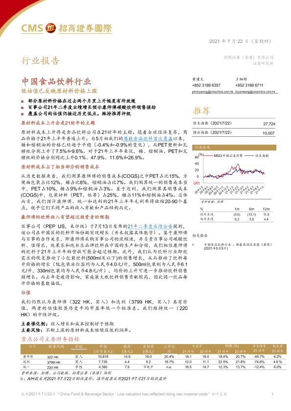 【招商证券国际】【20210722】中国食品饮料行业:低估值已反映原材料价格上涨-11页