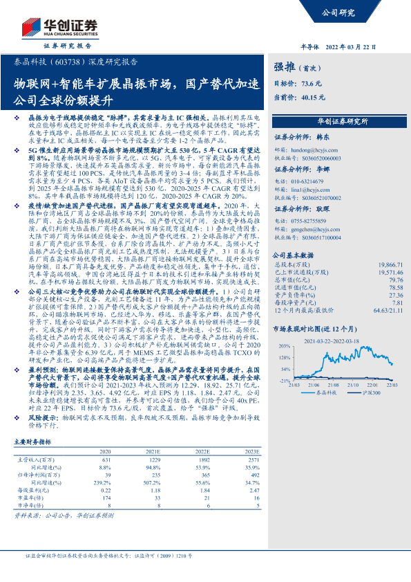 【华创证券】【20220322】20220322-华创证券-泰晶科技-603738.SH-深度研究报告:物联网+智能车扩展晶振市场,国产替代加速公司全球份额提升-31页