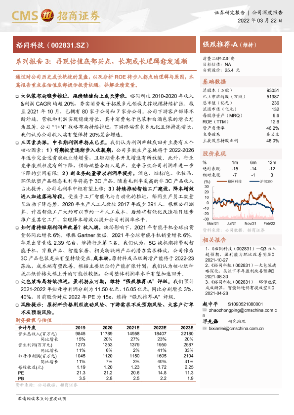 估值底部 包装行业 智能工厂 裕同科技 长期成长