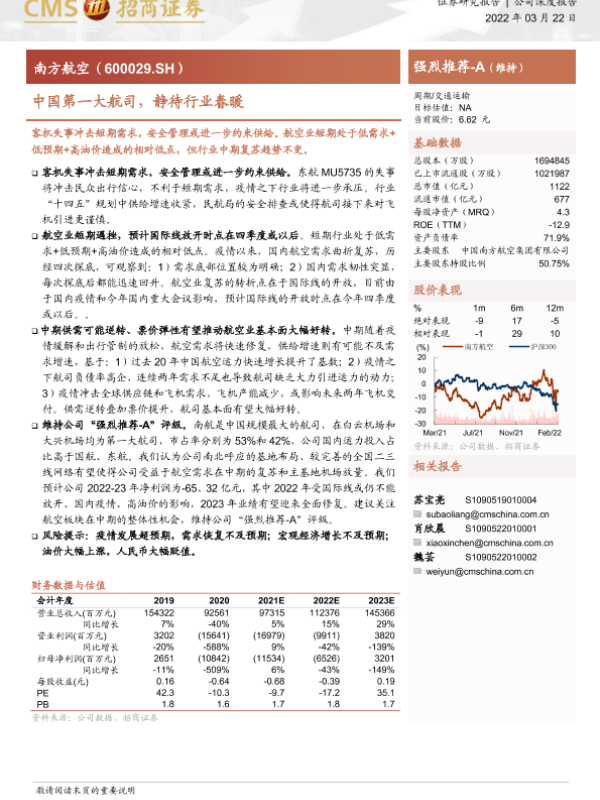 【海通证券】【20220322】中国第一大航司,静待行业春暖-24页