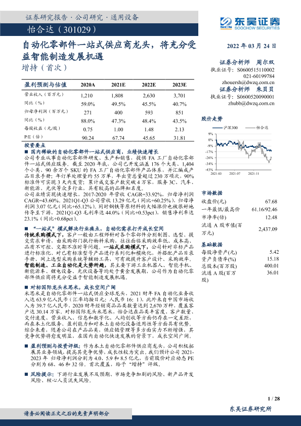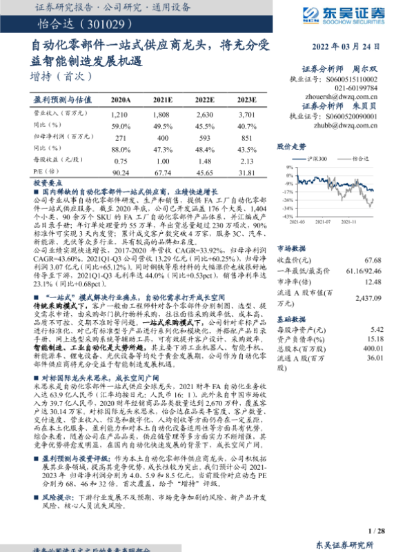 【东吴证券】【20220324】自动化零部件一站式供应商龙头,将充分受益智能制造发展机遇-28页