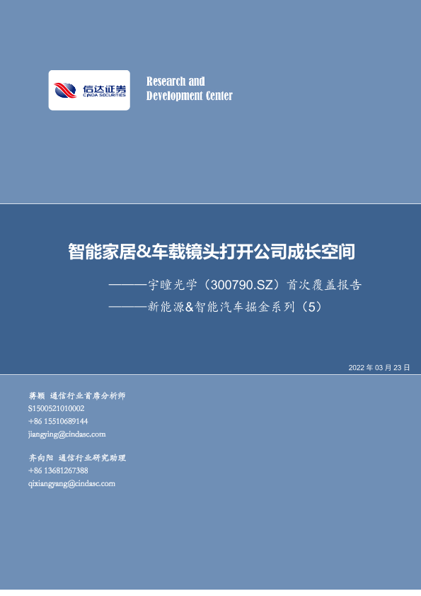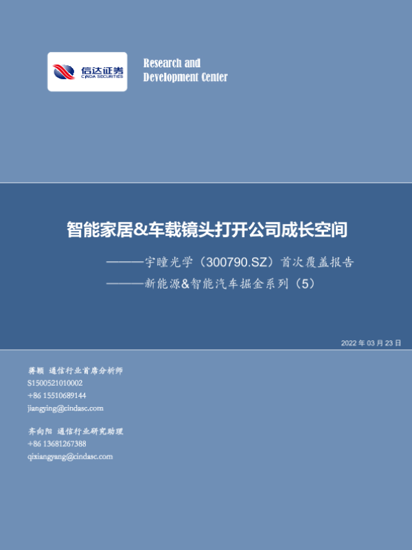 【信达证券】【20220323】20220323-信达证券-宇瞳光学-300790.SZ-新能源&智能汽车掘金系列(5):首次覆盖报告-智能家居&车载镜头打开公司成长空间-21页