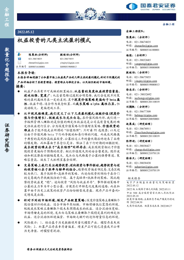 【国泰君安证券】【20220512】权益投资的几类主流盈利模式-25页