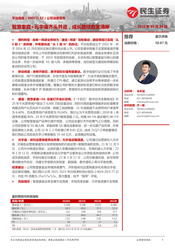 【民生证券】【20220324】平治信息(300571.SZ)公司深度报告:智慧家庭+元宇宙齐头并进,成长路径愈发清晰-24页