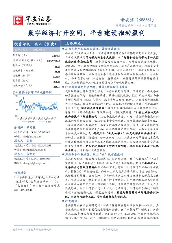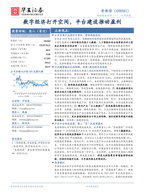 【华安证券】【20220325】20220325-华安证券-奇安信-688561.SH-网络安全系列(一):数字经济打开空间,平台建设推动盈利-24页