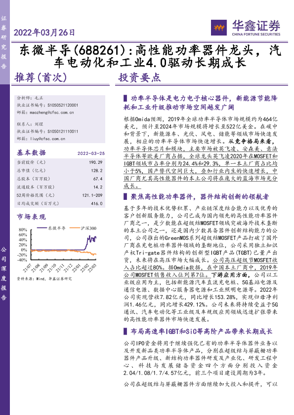 【华鑫证券】【20220326】东微半导(688261) 高性能功率器件龙头,汽车电动化和工业4.0驱动长期成长-38页