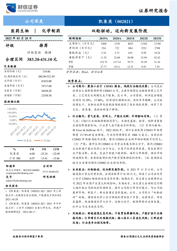 CDMO 凯莱英 化学制药 医药生物 双轮驱动