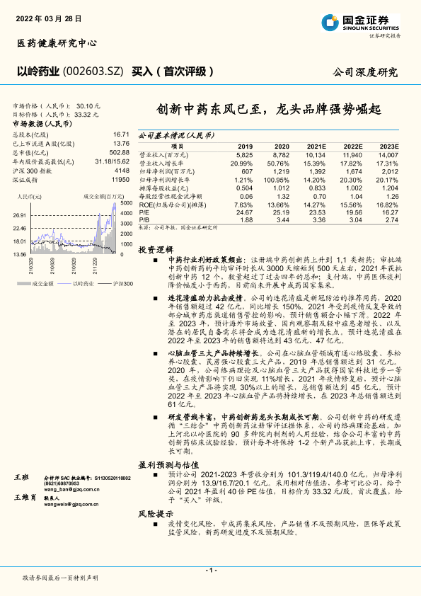 【国金证券】【20220328】创新中药东风已至,龙头品牌强势崛起-22页