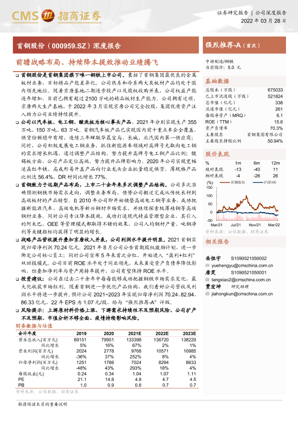 【海通证券】【20220328】20220328-招商证券-首钢股份-000959.SZ-深度报告:前瞻战略布局、持续降本提效推动业绩腾飞-27页