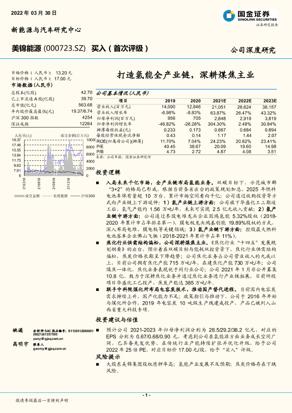 【国金证券】【20220330】打造氢能全产业链,深耕煤焦主业-29页