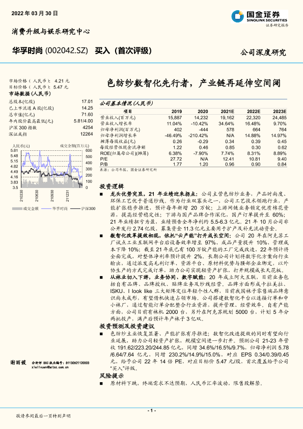 产业链延伸 华孚时尚 数智化 证券分析 色纺纱