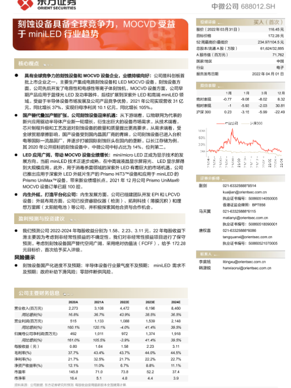 【东方证券】【20220401】中微公司-688012.SH-刻蚀设备具备全球竞争力,MOCVD受益于miniLED行业趋势-33页