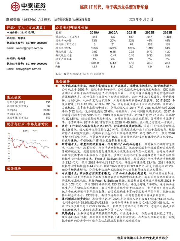 【中泰证券】【20220401】20220401-中泰证券-嘉和美康-688246.SH-临床IT时代,电子病历龙头谱写新华章-23页