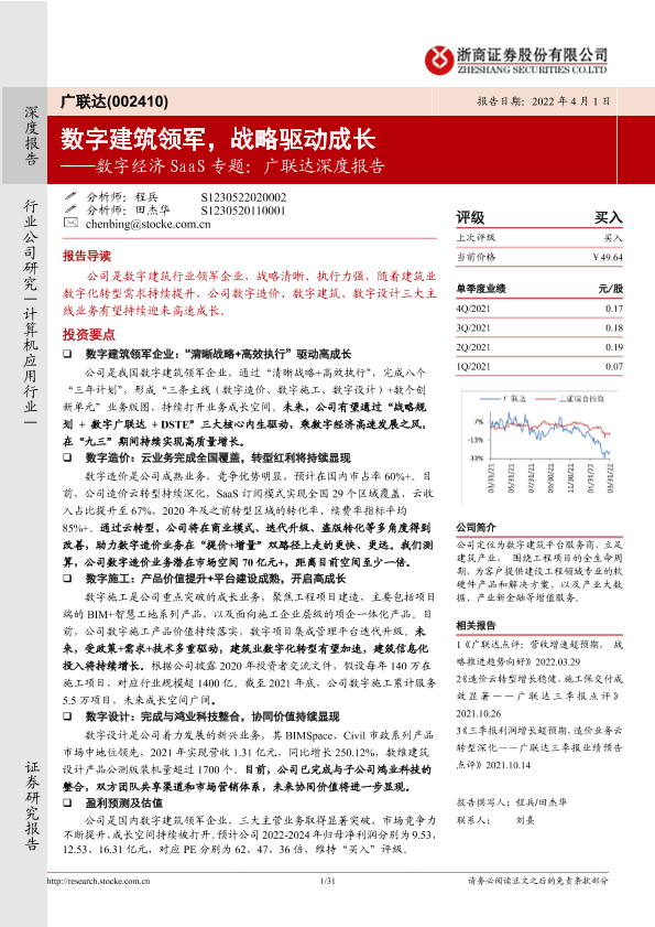 【浙商证券】【20220401】20220401-浙商证券-广联达-002410.SZ-数字经济SaaS专题:广联达深度报告:数字建筑领军,战略驱动成长-31页