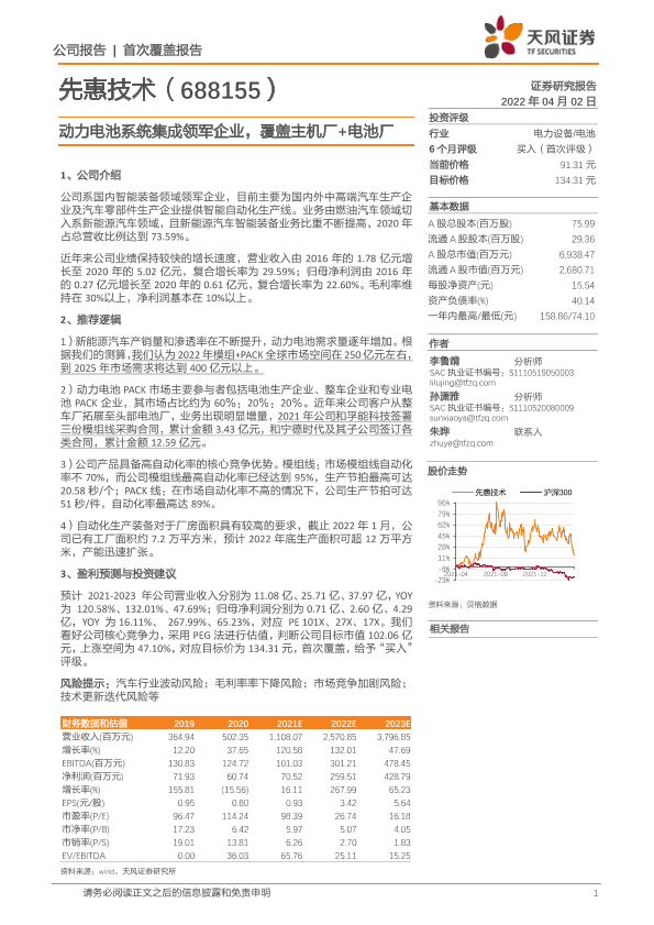 【天风证券】【20220402】先惠技术-688155.SH-动力电池系统集成领军企业,覆盖主机厂+电池厂-19页