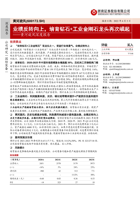 【浙商证券】【20220405】20220405-浙商证券-黄河旋风-600172.SH-黄河旋风深度报告:业绩反转向上,培育钻石+工业金刚石龙头再次崛起-28页