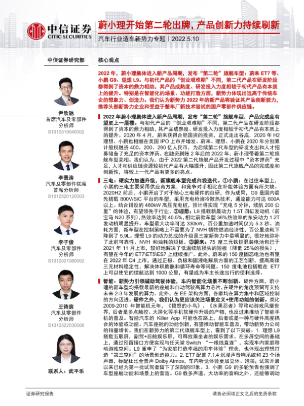 【中信证券】【20220510】汽车行业造车新势力专题:蔚小理开始第二轮出牌,产品创新力持续刷新-26页