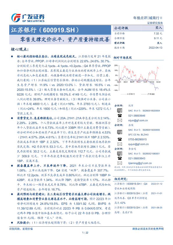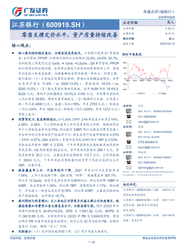 【广发证券】【20220413】20220413-广发证券-江苏银行-600919.SH-零售支撑定价水平,资产质量持续改善-22页