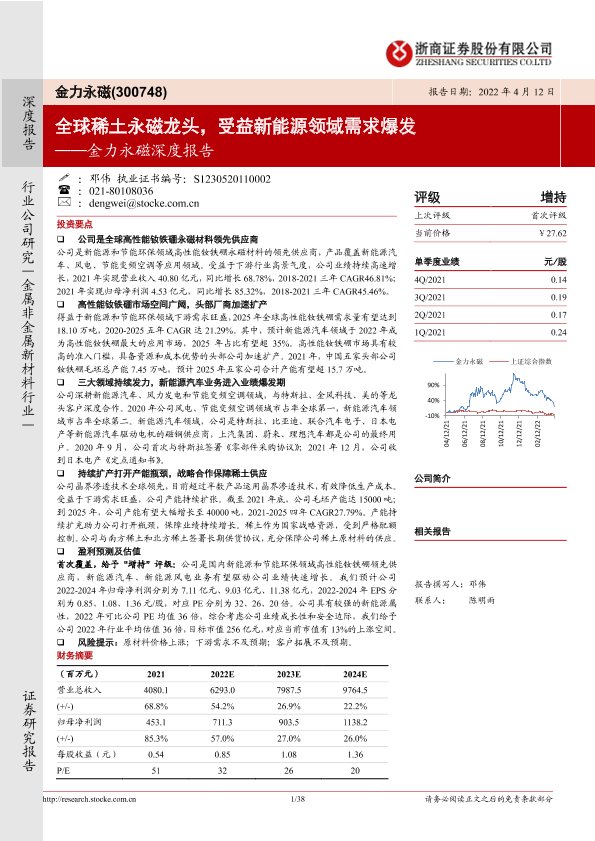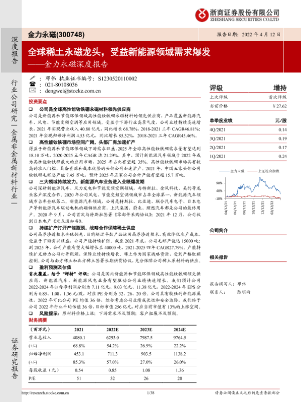 【浙商证券】【20220412】20220412-浙商证券-金力永磁-300748.SZ-金力永磁深度报告:全球稀土永磁龙头,受益新能源领域需求爆发-38页