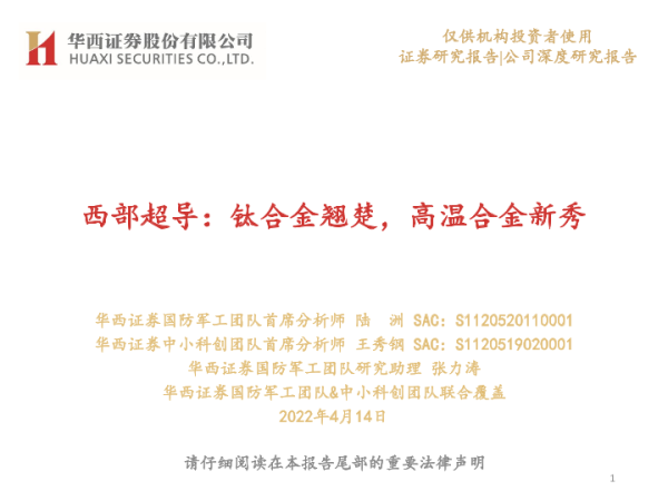 【华西证券】【20220414】西部超导:钛合金翘楚,高温合金新秀-62页
