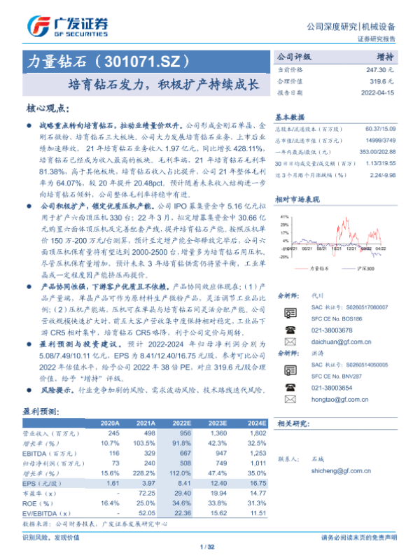 【广发证券】【20220415】力量钻石(301071.SZ)培育钻石发力,积极扩产持续成长-32页