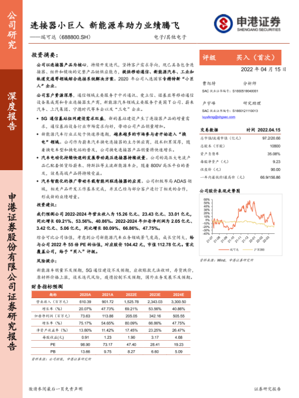 【申港证券】【20220415】瑞可达(688800.SH):连接器小巨人 新能源车助力业绩腾飞-40页