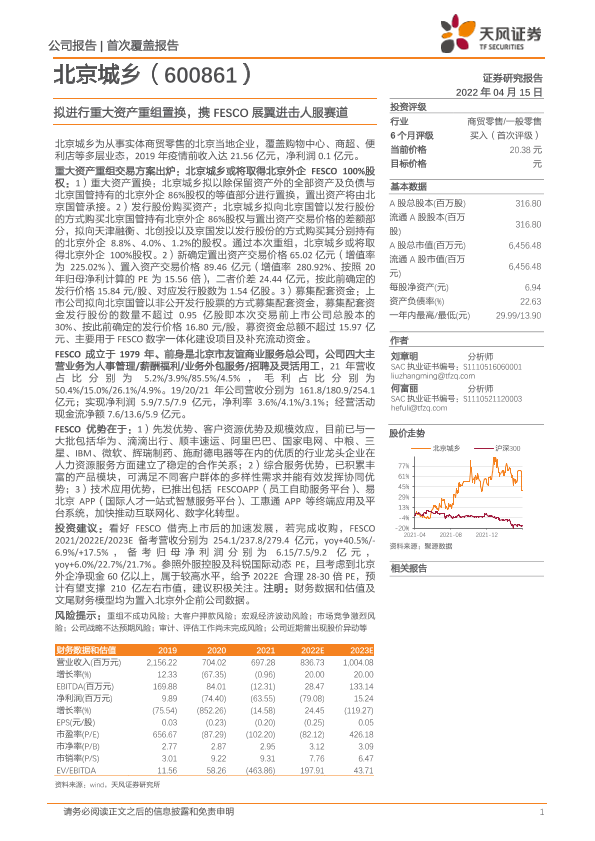 【天风证券】【20220415】拟进行重大资产重组置换,携FESCO展翼进击人服赛道-28页