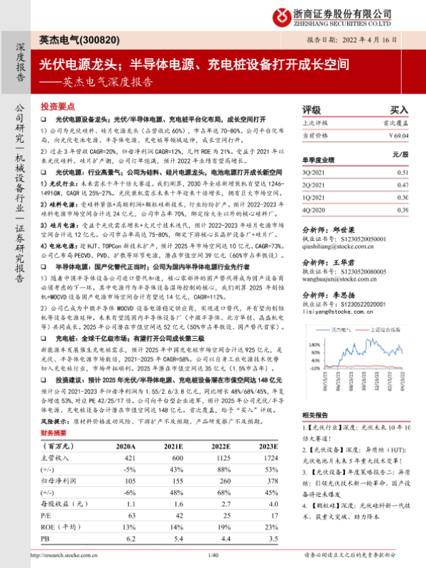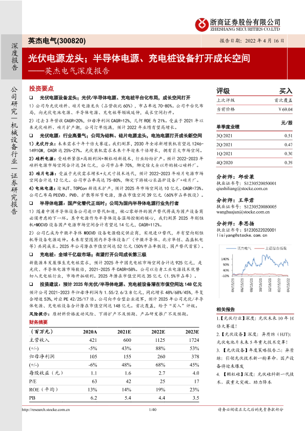 【浙商证券】【20220416】英杰电气深度报告:光伏电源龙头;半导体电源、充电桩设备打开成长空间-40页