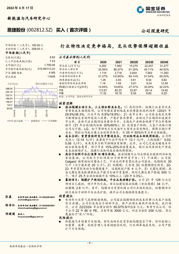 市场竞争 恩捷股份 财务分析 锂电池 隔膜行业