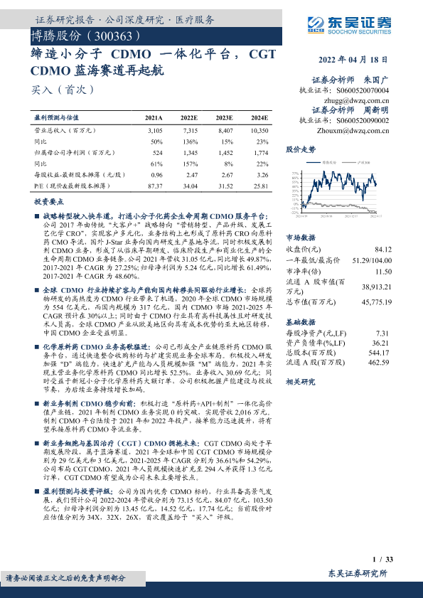 【东吴证券】【20220418】缔造小分子CDMO一体化平台,CGT CDMO蓝海赛道再起航-33页