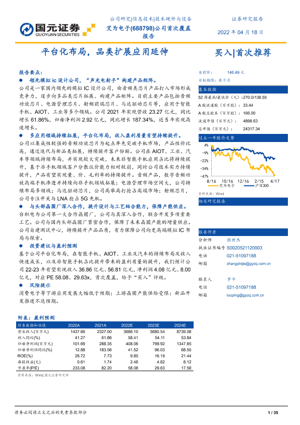 【国元证券】【20220418】国元证券-艾为电子-公司首次覆盖报告:平台化布局,品类扩展应用延伸-35页